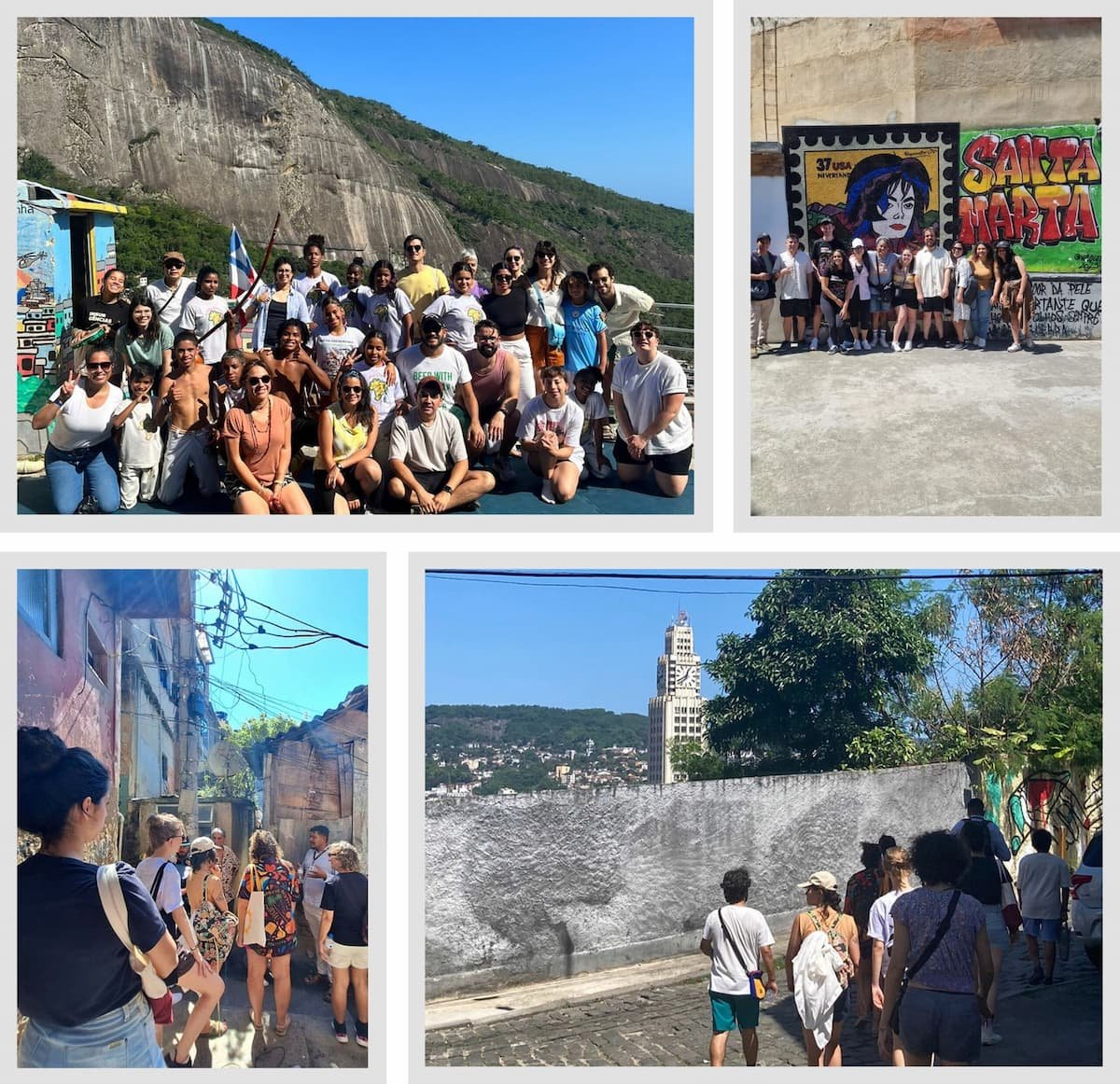 - Rolé 6: Santa Marta – Uma favela panorâmica: O rolé na Favela Santa Marta foi realizado por Sheila Souza, fundadora do projeto “Brazilidade”, uma empresa de turismo de base comunitária que busca promover a integração da cidade através do reforço da identidade e da história da favela. Iniciando o encontro na Rua São Clemente, o grupo embarcou no Plano Inclinado, caminhou pelos becos e vielas do Santa Marta, conheceu o Espaço Michael Jackson e até comprou lembrancinhas. De modo muito respeitoso e consciente, a guia local apresentou o contexto social e cultural da favela carioca, contando sobre o lugar em que cresceu e as diferentes realidades da região, trazendo uma nova reflexão sobre outras vivências da Zona Sul do Rio de Janeiro.