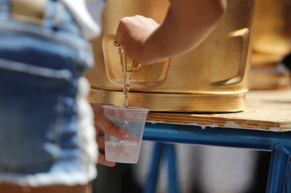 A intervenção Água de Beber faz parte da mostra Interferências, produzida pelo Oi Kabum! LAB, que propõe diversas intervenções na cidade para se observar e experimentar o meio urbano, a partir da criação da nova cena artística urbana popular do Rio de Janeiro. A intervenção convidou os transeuntes a refletir sobre o uso e o valor da água potável como produto industrializado e vendido, mesmo sendo um bem comum e fundamental para todas as pessoas. A partir de filtros de plástico, barro, vidro e outros materiais, o grupo saiu para as ruas e distribuiu água potável, gratuitamente, em copos de plástico, para pessoas que andavam perto dos locais onde ocorria a intervenção. Por meio dessa distribuição, surgiram interações dos transeuntes entre si e com os organizadores do projeto, que abordaram a apropriação da água pelo setor privado.