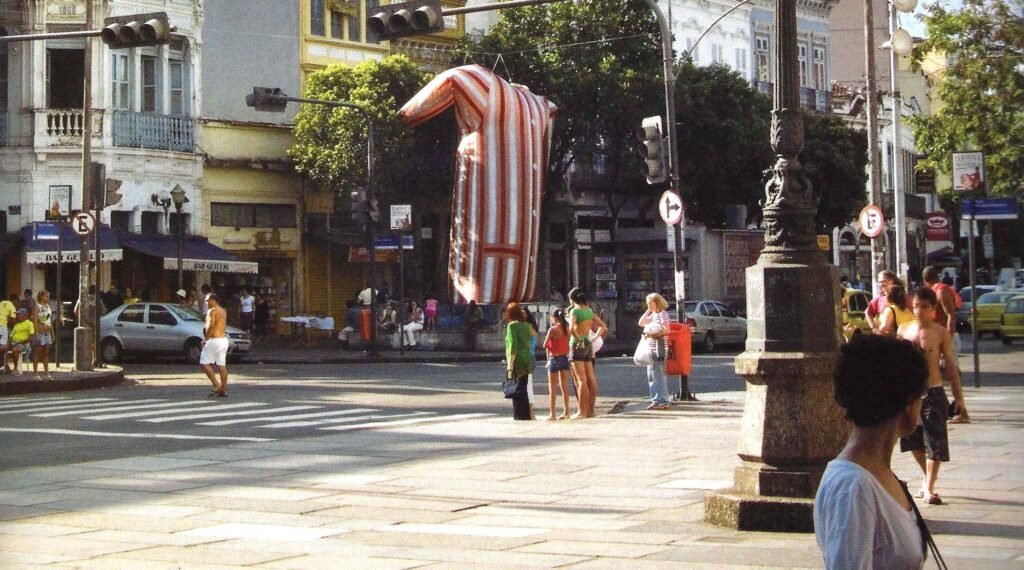 De 1960 até 1987, a Rua do Catete abrigou o centro do poder republicano. Em 1954 foi também cenário de um dos eventos mais marcantes da história do país: o suicídio de Getúlio Vargas. Nessa intervenção, as artistas costuram um boneco inflável gigante, conhecido como ‘biruta’ (ou boneco do posto), representando o pijama do ex-presidente no momento do suicídio. Pela escala do biruta, fica fácil atrair a curiosidade dos passantes, relembrando a importância da rua na história do país.