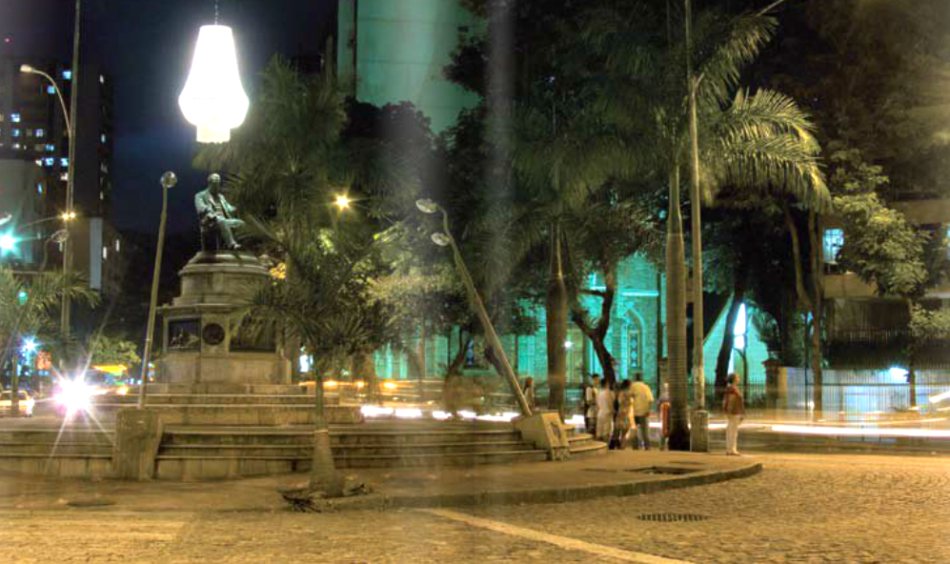 O que faz um objeto como um lustre pendurado sobre um escritor como José de Alencar, em uma praça pública que leva o seu nome? O lustre como elemento de espaço interior, de caráter doméstico, quando recriado no espaço externo, produz mais do que uma iluminação, mas uma cena instigante. O objetivo da intervenção é de propôr uma ligação entre o passado da primeira metade do século XX, momento de esplendor do bairro do Flamengo, com a contemporaneidade, criando um contra-ritmo urbano, e uma pausa para apreciação do monumento.