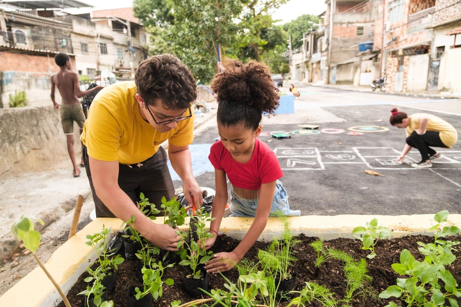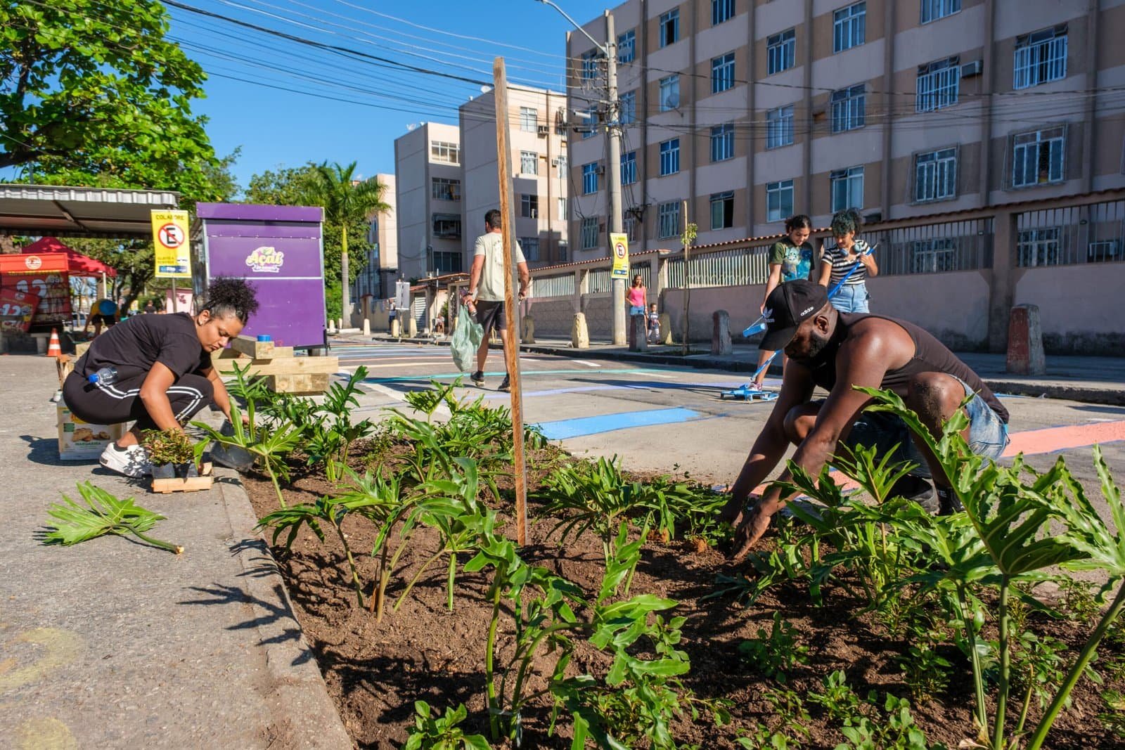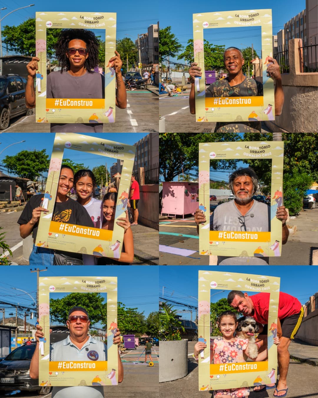 Em 2025, o Laboratório Urbano Oswaldo Cruz ampliou o alcance do projeto-piloto iniciado no ano anterior, envolvendo ainda mais a comunidade na criação de espaços urbanos mais seguros, sustentáveis e acolhedores. Com processo participativo dividido em 4 etapas, a cocriação ocorreu nos dias 11, 12 e 13 de abril, a partir de oficinas com moradores do bairro. As atividades incluíram mapeamento afetivo, análise de rotas de mobilidade, identificação de pontos de interesse e a realização da Roléficina, combinando caminhada, escuta ativa e aplicação da ferramenta Placegame. Também foi desenvolvido o jogo “Construa sua Rua”, que estimulou os participantes a pensarem o espaço público a partir da perspectiva de diferentes grupos sociais. A validação ocorreu nos meses de junho e agosto nas praças e espaços comunitários do bairro, onde banners, simulações e colagens apresentaram as propostas elaboradas em conjunto, permitindo ajustes a partir das contribuições dos moradores. Paralelamente, um workshop intensivo na FAU/UFRJ reuniu estudantes e professores para fabricar o mobiliário urbano a ser instalado durante as intervenções. A fase de implementação teve início em setembro e ocorreu em diferentes pontos de Oswaldo Cruz, como a Travessa Capelão Antônio Avelino, a Praça Professora Adélia Bandeira e a Praça em frente à Estação de Oswaldo Cruz. As ações incluíram a criação de hortas e canteiros, o plantio de mudas, a abertura de golas para árvores, a pintura do piso, a instalação de mobiliário urbano e a ampliação de áreas destinadas aos pedestres. As intervenções contribuíram para a redução da velocidade dos veículos, estimularam a permanência no espaço público e fortaleceram a convivência comunitária. Além disso, murais artísticos produzidos por artistas locais agregaram identidade, cor e expressão cultural ao território. Finalmente, a etapa de avaliação ocorreu no mês de novembro, com oficinas de retroalimentação em que a comunidade pode avaliar o projeto e receber materiais que permitam o cuidado e a manutenção dos espaços.