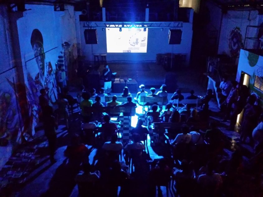 Além dos encontros, o coletivo investe em intervenções, também com um cunho crítico em relação às problemáticas da Baixada Fluminense e comunidades próximas,em praças e espaços públicos.