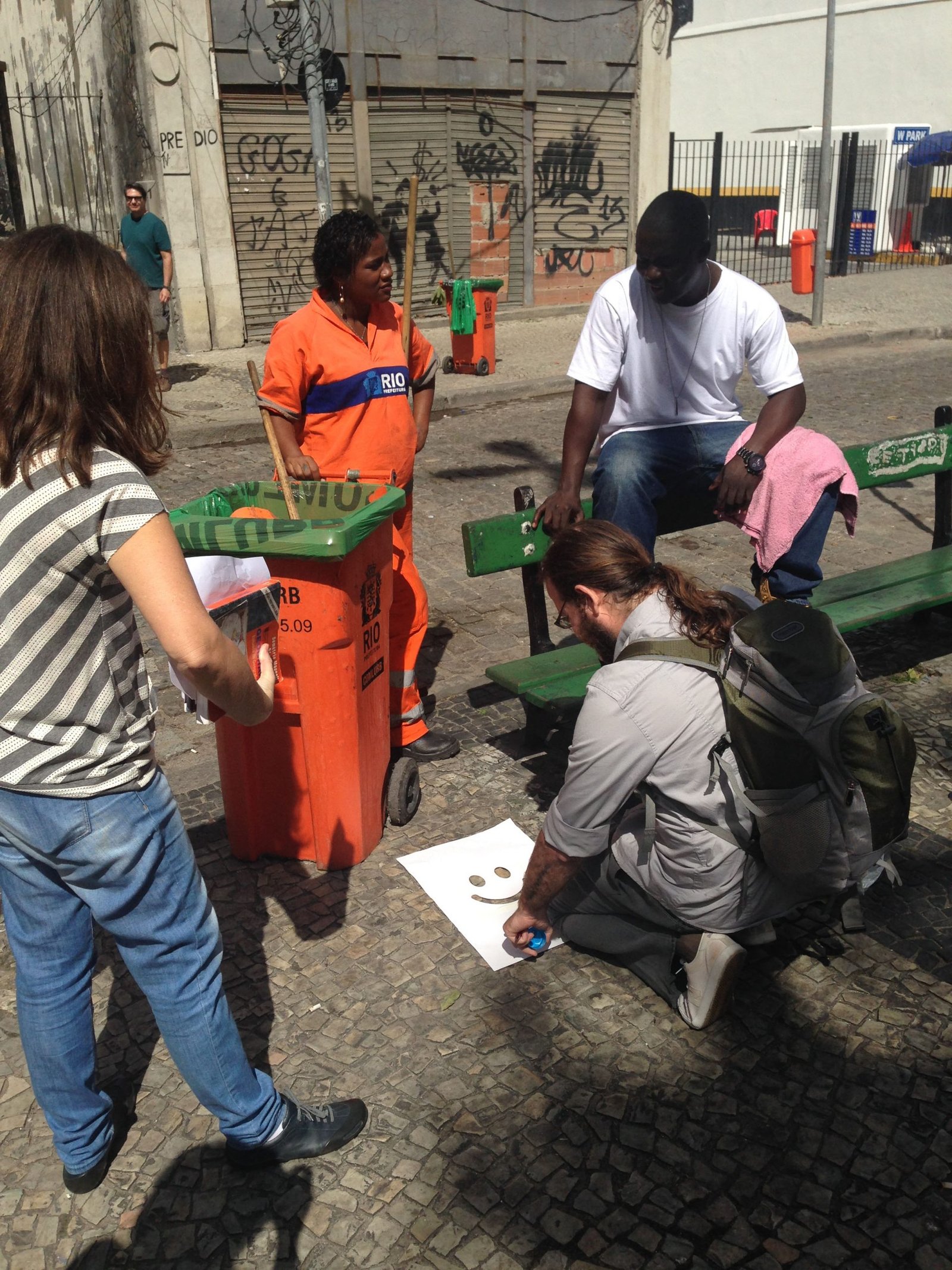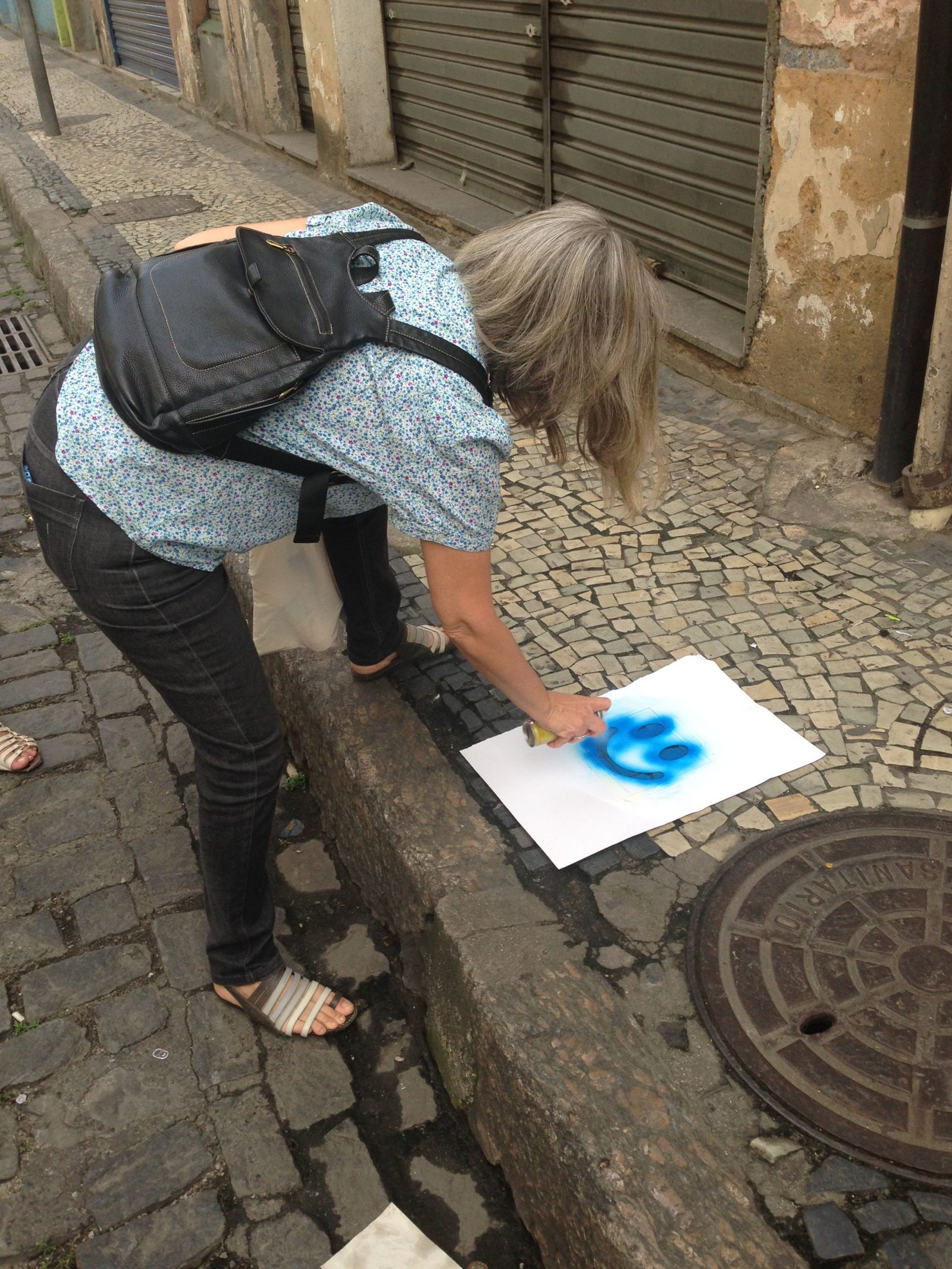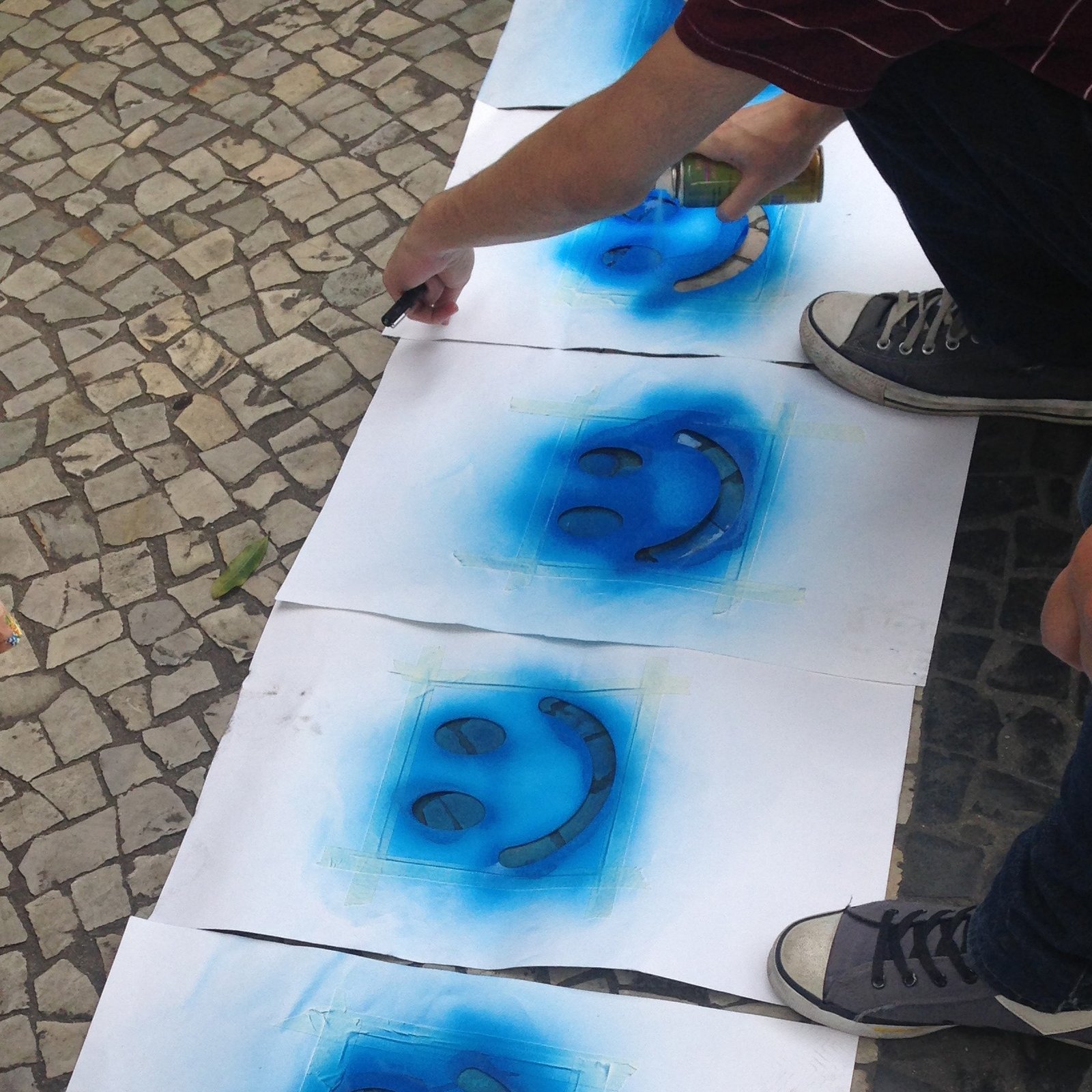 A intervenção foi realizada através de uma oficina, que propôs aos participantes vivenciar a cidade em um período que ela muda completamente o padrão de frequência ao considerarmos suas funções durante a semana de trabalho. Através de um percurso pelo centro do Rio de Janeiro, cada participante foi convidado a marcar com stencil os espaços de afeto e a experimentar espacialidades cotidianas.