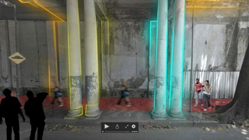 Já o segundo, propôs a Dots: um ponto, um poema, na área do ponto da van. A preocupação em tornar um espaço convidativo e acessível levou as participantes do grupo a pensar no Instituto Benjamin Constant, instituição vizinha que atende aos cegos e pessoas com visibilidade prejudicada. Pensaram em criar ali uma área de exposição com piso acessível e painéis em braile e em português.