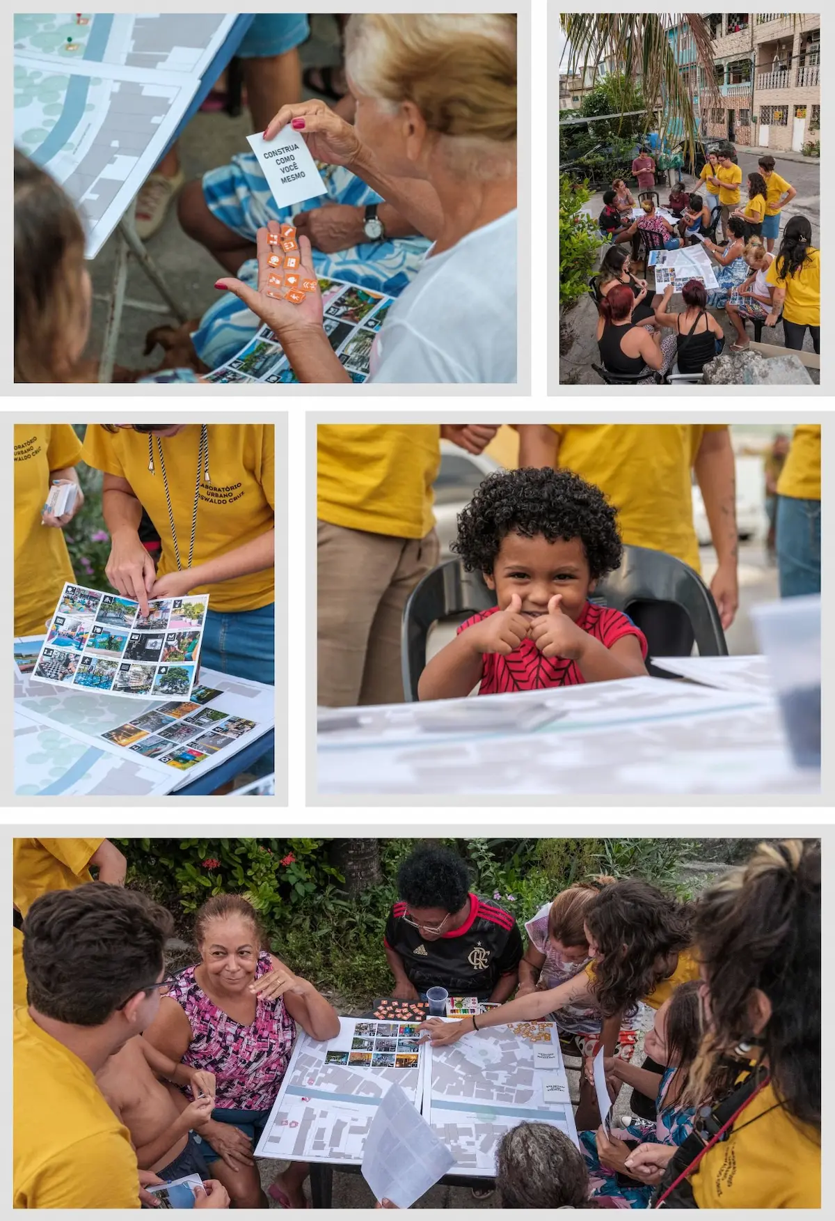Ainda no segundo dia, foi realizada a Roléficina, uma atividade em formato de percurso que combina caminhada com escuta ativa e engajamento comunitário. Participaram grupos convidados, que seguiram trajetos previamente definidos com base no mapa de mobilidade desenvolvido nos dias anteriores. Ao longo do caminho, foi aplicada a ferramenta “Placegame”, com perguntas direcionadas à avaliação dos espaços e sugestões de melhorias. A dinâmica buscou estimular a percepção crítica dos participantes sobre o território, promovendo reflexões coletivas sobre como tornar os espaços mais confortáveis, acessíveis e inclusivos.